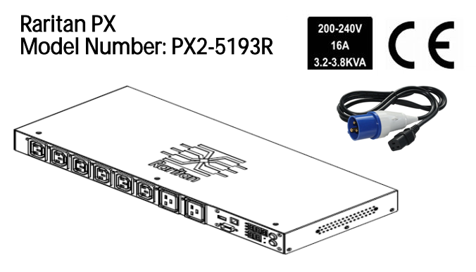 Pdu Choice Px2 5193r Raritan Pdu 1ph 230v Ac 16a 8 Outlets 6 X Iec C 13 2 X Iec C 19 Plug Iec60309 16a 3 8kva 1u Horizontal Pdu Ethernet Serial Usb A Usb B And Sensor